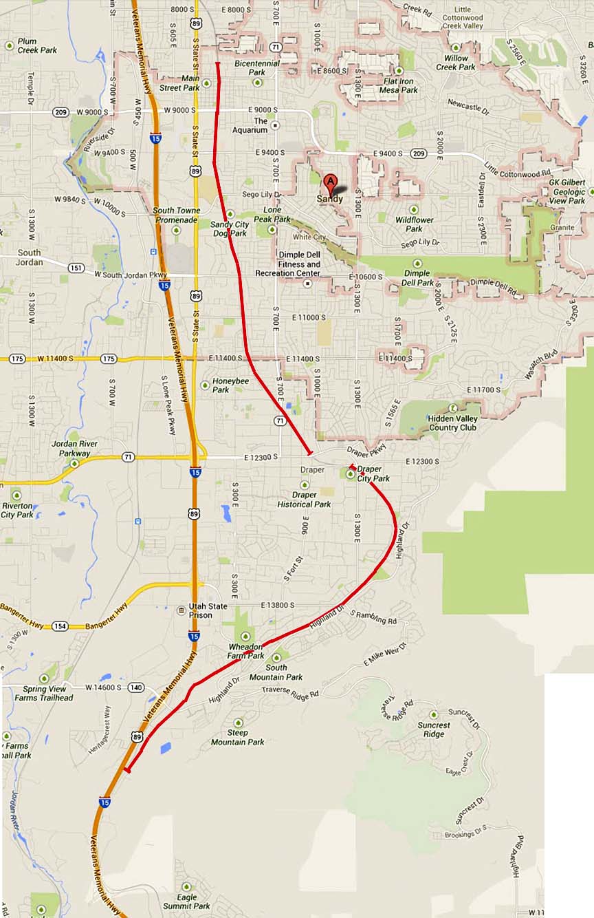 Porter Rockwell trail starts at 8500 South in Sandy Utah ending at Point of the Mountain