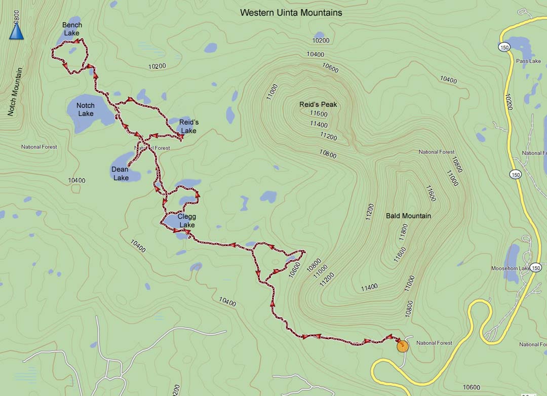We started and finished this hike from Bald Mountain trailhead and parking lot on SR 150