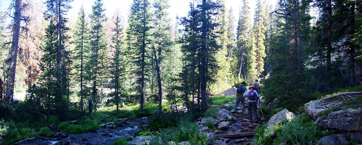 Press Function key 11 for larger screen             Panoramic #9             hiking up a wet trail, along the stream